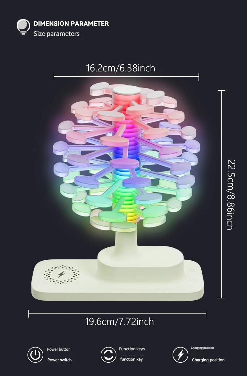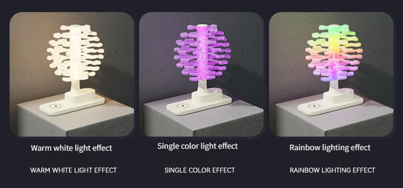 LIGADO ou DESLIGADO. Quando em uso, a luz pode ser ajustada para mudar de cor, mas não pode girar.